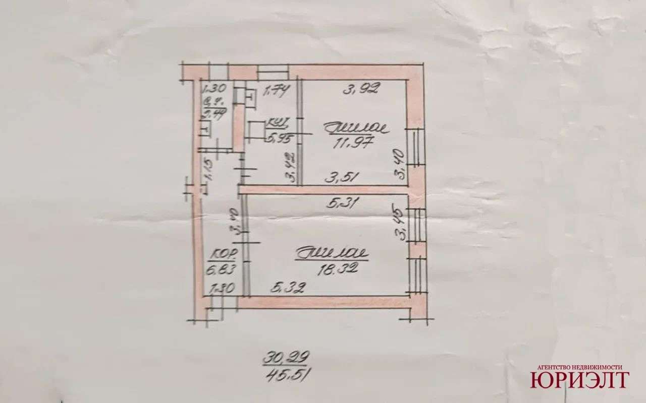 Квартира светлая и теплая общей площадью 45,51 кв.м., кухня 5,95 кв.м. Все окна ПВХ. Санузел совмещённый. В квартире своё горячее водоснабжение.