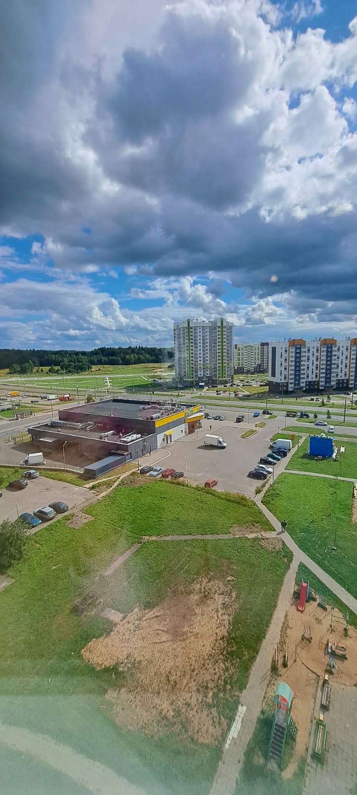 Школа рядом с домом, а также магазины разных торговых представителей и т. д.