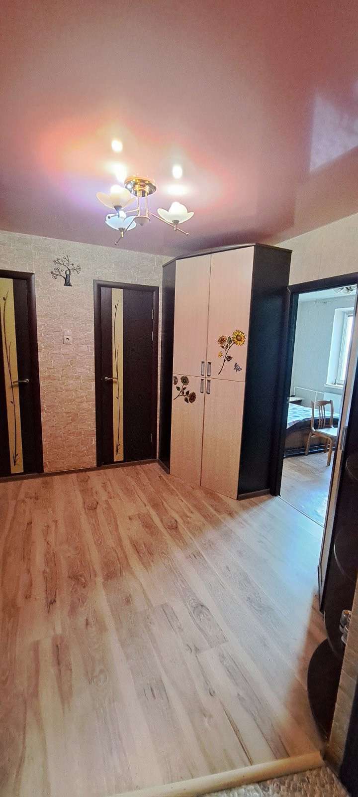 Две отдельные комнаты на разные стороны света, раздельный санузел, две лоджии- из кухни и комнаты, полная стяжка пола с частичным покрытием ламинатом и плиткой, натяжные потолки, хорошая сантехника в квартире.
