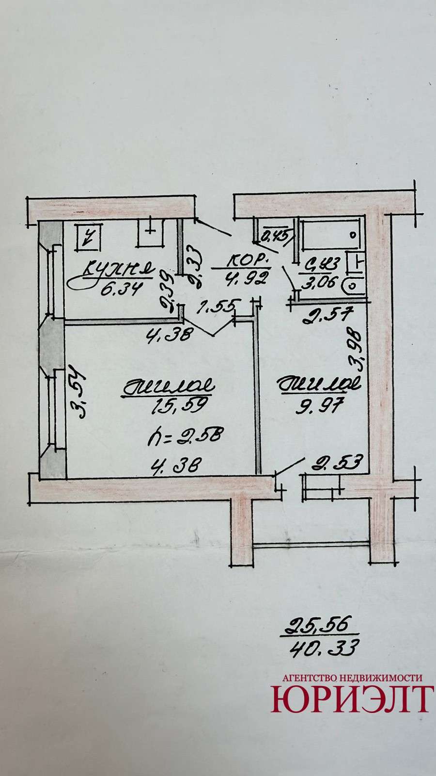 Общая площадь 40.33 м