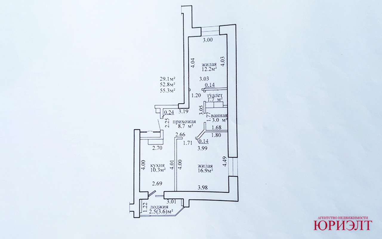 Квартира общей площадью 52,8 кв.м., жилая 29,1 кв.м., кухня 10,3 кв.м. , отделка от застройщика, что даёт возможность воплотить дизайн своей мечты.