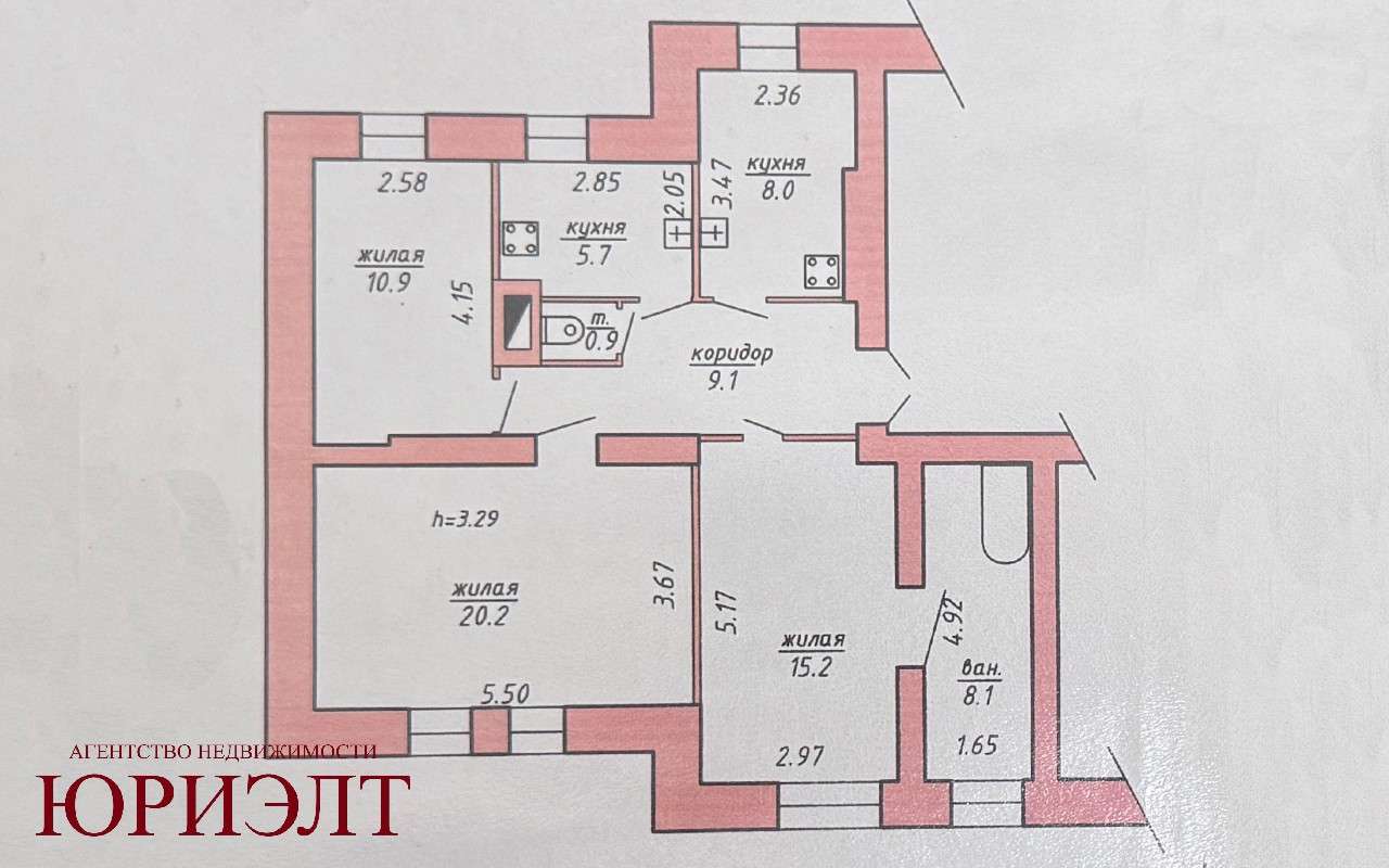 В продаже просторная квартира площадью 78.1 м² в кирпичном доме! Идеальное место для комфортабельной жизни с высокими потолками 3.29м2, придающими воздуху и свету дополнительное пространство.