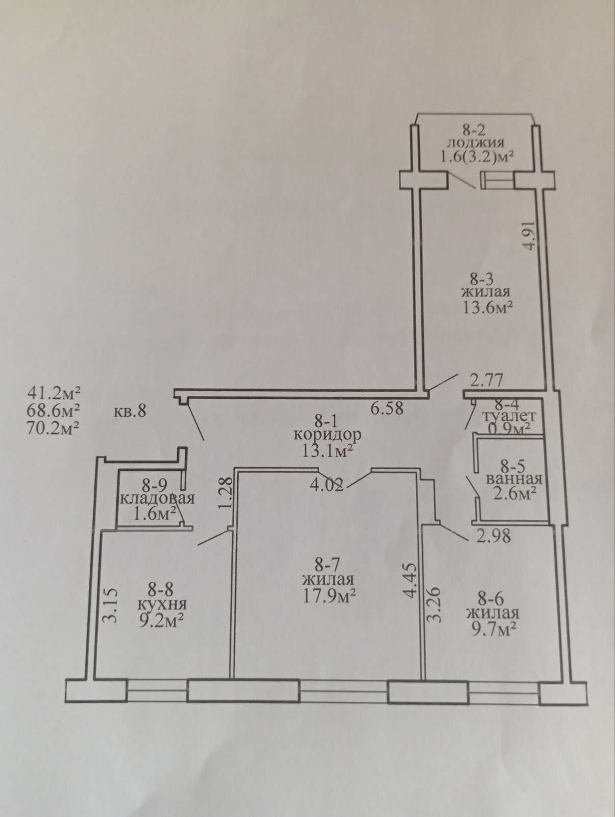 Квартира расположена в 9 этажном панельном доме 1993 года постройки. Представленная квартира расположена на 2 этаже, квартире не угловая. Общая площадь квартиры 68 М2. Жилая 41 М2, представлена тремя изолированными комнатами. Просторная кухня 9,3 м2.