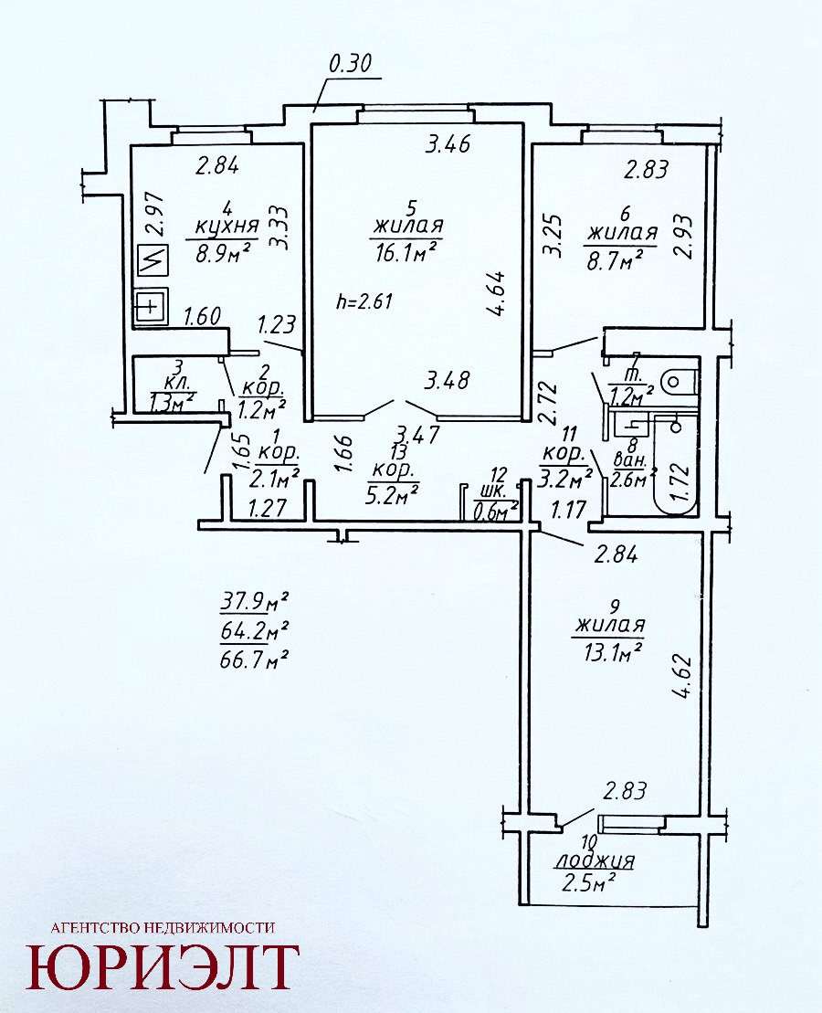 Общая площадь 66.7 м