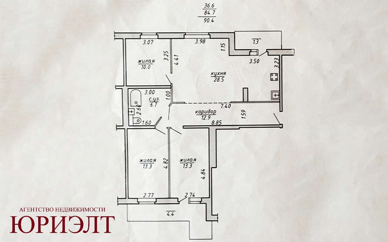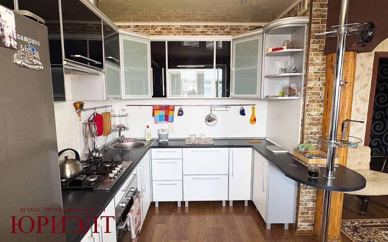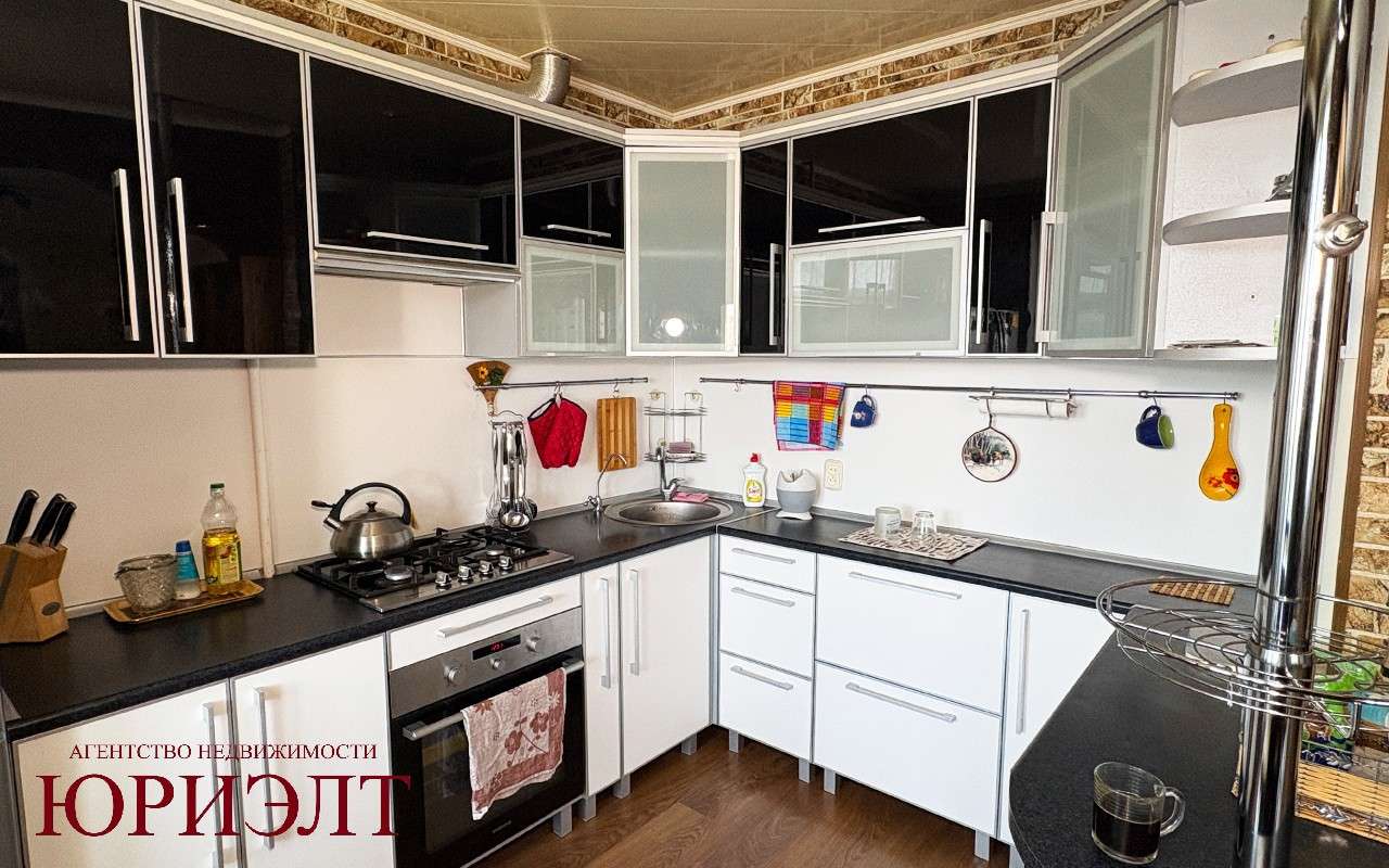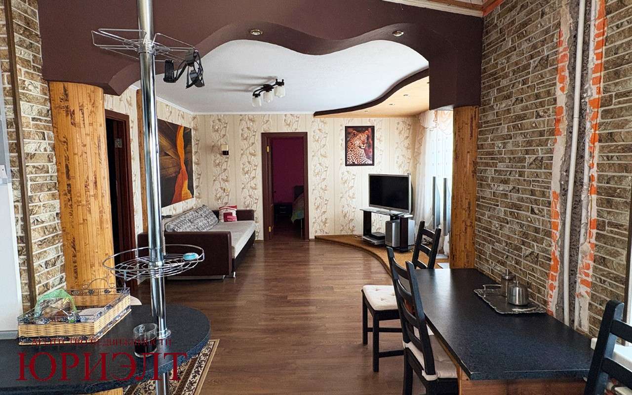 Три отдельные комнаты + гостинная- кухня 29 кв. м с кухонным оборудованием.