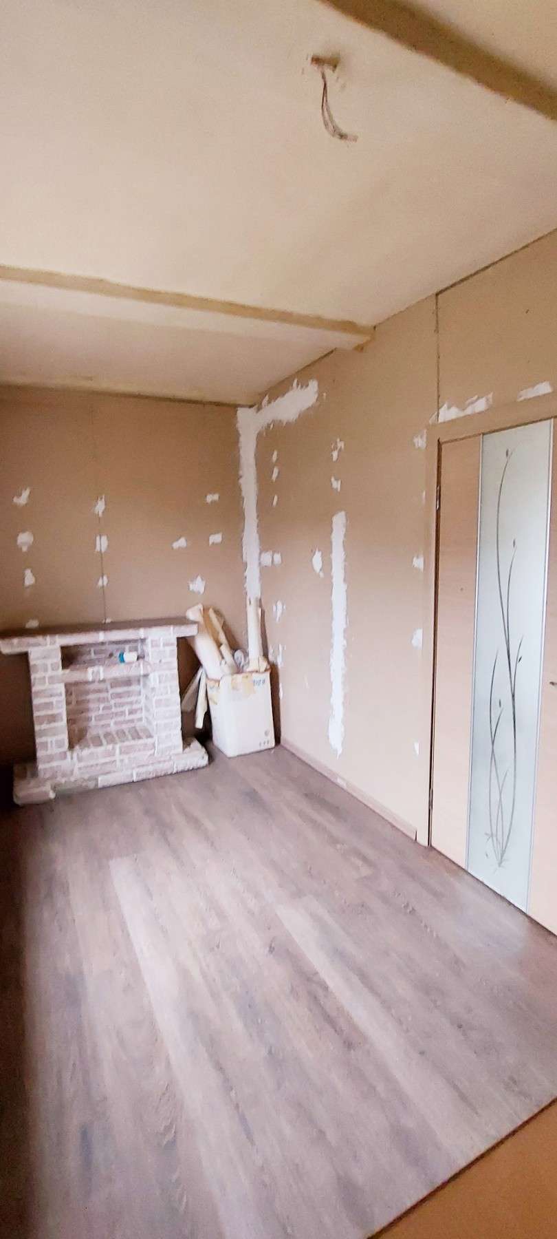 Хороший фундамент, высокий потолок, установлены немецкие пластиковые окна( большой размер окна), крыша- шифер, полы- ламинат, ДВП.