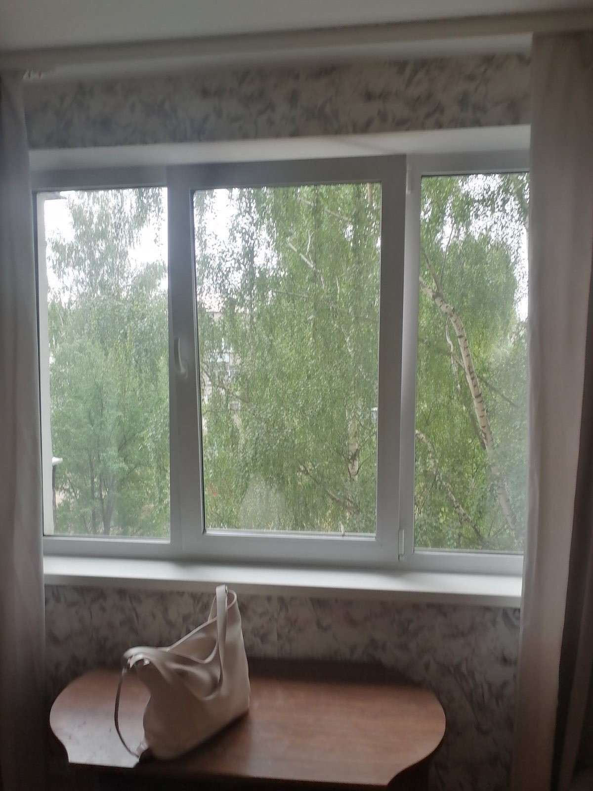 В комнате ламинат на полу, натяжной потолок, окно ПВХ.